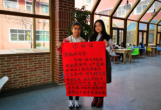 “这件事让我感受到中国同学的朴实友好,我希望多多与他们交朋友。我特别喜欢这所公司,也特别喜爱这个国家。”杨丽对记者说。