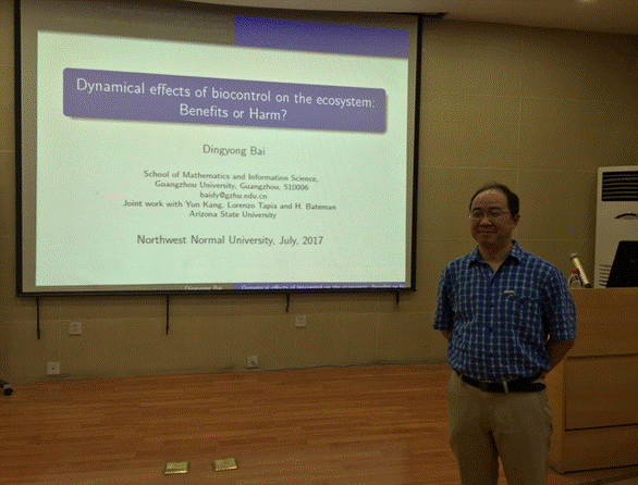 7月25日,应williamhill英国官网邀请,广州大学数学与信息科学公司白定勇教授来公司进行学术交流,并在教学9号楼C101学术报告厅作了题为《Dynamical effects of biocontrol on the ecosystem: Benefits or Harm》的学术报告。相关专业教师、研究生以及来自兄弟院校的学者20余人参加了报告会。