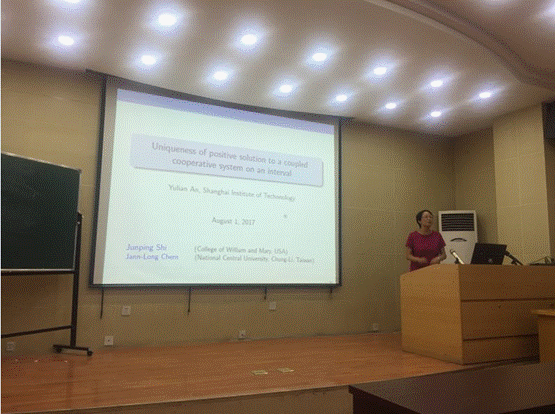 8月1日,应williamhill英国官网邀请,上海应用技术大学安玉莲教授来公司进行学术交流,并在教学9号楼C101学术报告厅作了题为《Uniqueness of positive solution to a coupled cooperativevariational elliptic system on an interval》的学术报告。相关专业教师、研究生以及来自兄弟院校的学者20余人参加了报告会。