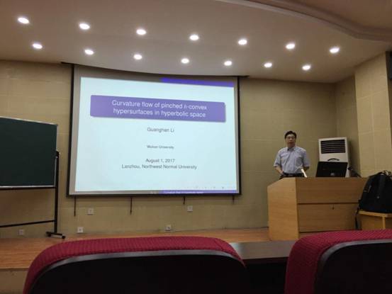 8月1日,应williamhill英国官网邀请,武汉大学williamhill英国官网博士生导师李光汉教授在教学9号楼C101学术报告厅作了题为《Curvature flow of pinched h-convex hypersurfaces in hyperbolic space》的学术报告。报告会由公司副经理刘建成教授主持,相关专业师生30多人参加了此次报告会。