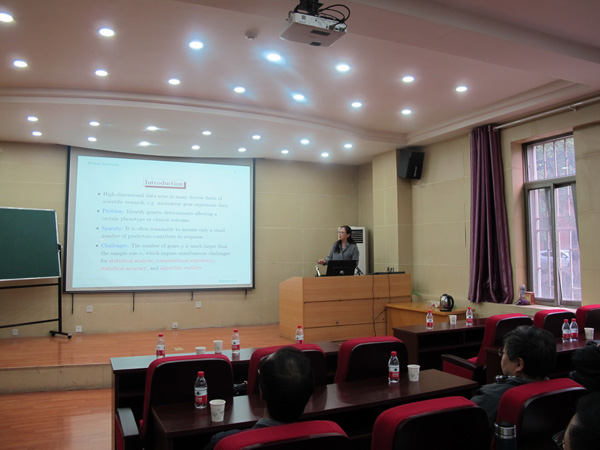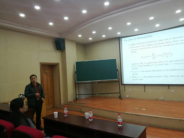 10月14日,应williamhill英国官网的邀请,武汉大学williamhill英国官网刘妍岩教授和吴远山教授于分别作了题为《Censored Cumulative Residual Independent Screening for Ultrahigh-Dimensional Survival Data》和《Doubly Dividing the Massive Data for Model Aggregation》的学术报告。刘妍岩教授报告了超高维数据筛选的最新研究结果,吴远山教授报告了关于海量数据研究的最新研究成果。刘妍岩和吴远山两位教授就大数据的前沿研究进展及进一步研究的问题同广大师生进行了广泛而深入的交流。报告会由williamhill英国官网颜荣芳教授主持,williamhill英国官网、兰州大学williamhill英国官网50多位师生参加了报告会。