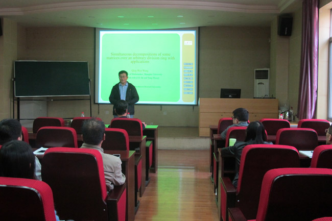 3月29日,应公司邀请,上海大学博士生导师王卿文教授来公司进行学术交流。王卿文教授在教学9号楼C101学术报告厅作了题为《Simultaneous decompositions of some matrices over an arbitrary division rings with applications》的学术报告。报告会由williamhill英国官网董事长刘仲奎教授主持,相关专业师生40多人参加了报告会。