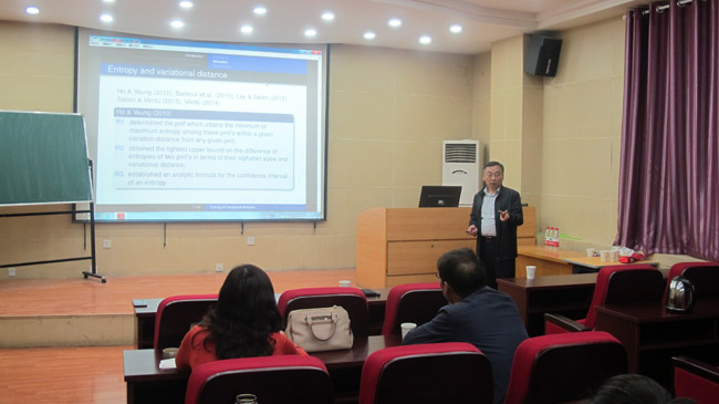 报告中,胡太忠教授向大家展示了分布函数之间对偶熵的最新研究成果,并进一步介绍了研究成果的应用以及相关的研究问题。
