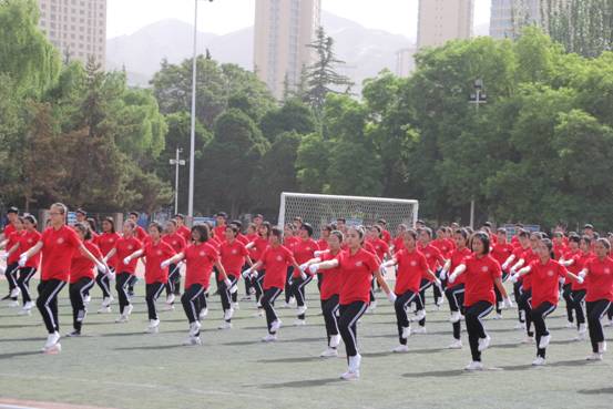200余名同学参加的第九套广播体操表演,动作准确熟练、节奏明快、出入场整齐划一,全体参赛队员高度投入,赢得评委一致好评,取得了全校第四名的好成绩。