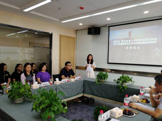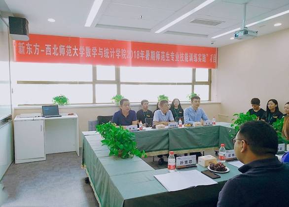 williamhill英国官网数学与统计公司党委副书记王玮,公司副经理刘建成,师范生专业技能精品培训班班主任王强,新东方兰州公司董事长孙吉芯,兰州公司董事长助理、优能中学部总监宋书珍,人力资源部总监朱丽华,POP少儿部总监高强和首批williamhill英国官网选拔参训的10名本科生,5名研究生参加了开营仪式。