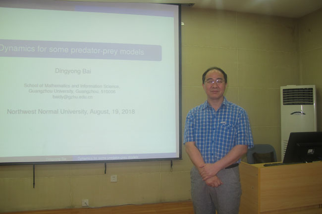 8月19日下午,公司邀请,广州大学白定勇教授在9号楼C101作了题为《几类捕食-食饵模型的动力学行为》的学术报告。报告会由马如云教授主持,相关专业师生约30多人参加了报告会。