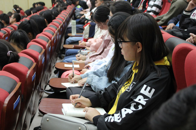 同时,应公司之邀,公司武装保卫处副处长李成旺和图书馆陆金燕老师分别为同学们作了专题讲座。李处长用一个个鲜活的案例,幽默风趣地讲解了财产安全、消防安全、交通安全和国家安全等知识,为同学们上了一堂精彩的安全教育课。图书馆陆老师则从认识图书馆、利用图书馆(资源和服务)、数字图书馆三方面介绍了图书馆馆藏分布、开馆时间、图书借还流程、咨询服务、数字资源等内容,让同学们对图书馆有了更进一步的认识和了解。