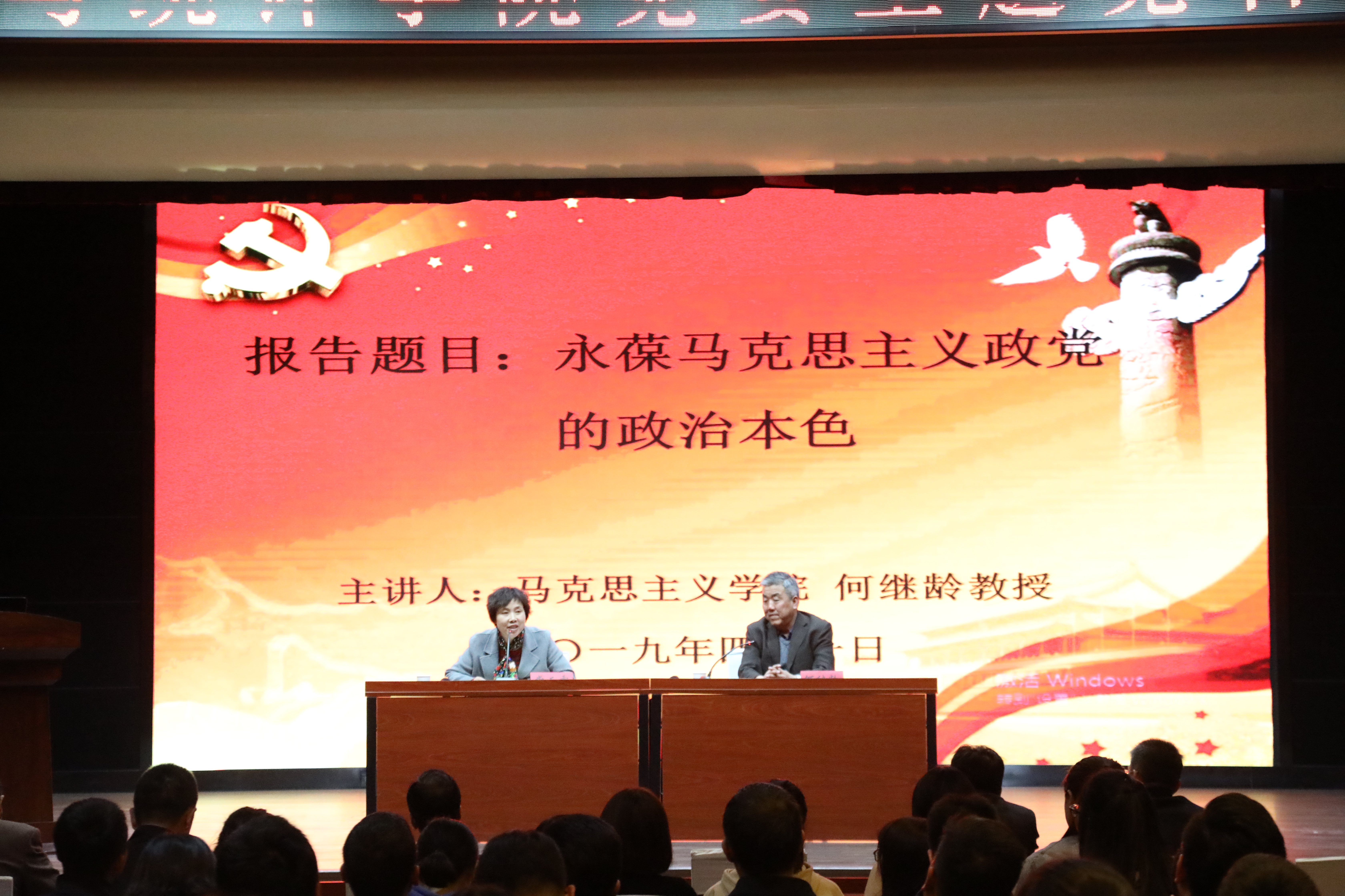 何继龄教授围绕新时代加强党的政治建设的重要性、新时代加强党的政治建设的基本原则、新时代加强党的政治建设的主要内容、新时代加强党的政治建设的根本举措等四个方面的内容展开了详细讲解。他指出,新时代加强党的政治建设是全面从严治党向纵深发展的应有之义,是全面加强和改进党的领导的必然选择,是马克思主义执政党的本质要求,是对党的优良传统的继承和弘扬;新时代加强党的政治建设,要以党章为依据、以政治为标准、以问题为导向、以过程为保证;要从坚定政治信仰、坚持党的政治领导、提高党的政治能力、净化政治生态等方面抓起;要以落实领导责任、抓住关键少数、强化制度保障、强化执纪问责,一查到底为根本举措。报告过程中,何老师将党史与国情相结合,将理论分析与现实剖析并重,报告内容丰富全面,讲解深入浅出,幽默风趣,让与会师生受到了良好的思想洗礼。