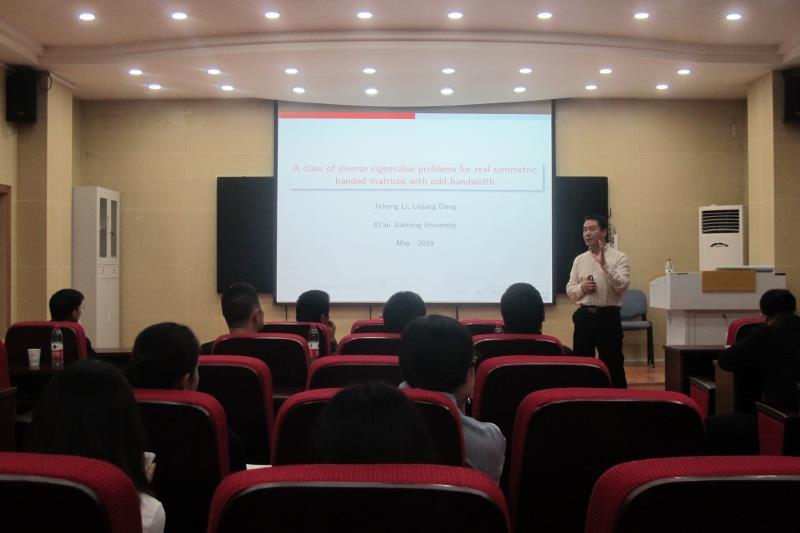 5月17日,应公司邀请,西安交通大学李继成教授来院作了题为《A class of inverse eigenvalue problems for real symmetric banded matrices with odd bandwidth》的学术报告。报告会由缪树鑫副教授主持,相关专业师生约40余人参加了报告会。