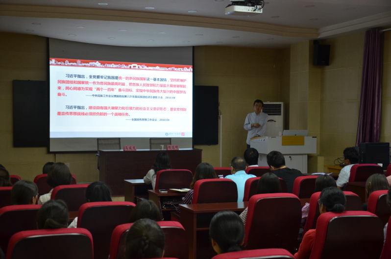 报告会上,侯选民副教授围绕民族的由来与发展、民族地区的主要特点、我国是统一的多民族国家、我们是民族命运共同体、我们要实现中华民族伟大复兴等内容详细阐释了民族的历史渊源,民族的个性与共性,大众对民族地区及民族关系的误解以及促进民族团结进步的重要性等。侯老师通过大量生动鲜活的实例,告诉师生要正确理性认识民族关系、抵御外来的“糖衣炮弹”;要消除狭隘的民族认识,以更宽广的视野、更高远的理想和更远大的格局维护民族团结进步,推进民族团结进步,为中华民族的伟大复兴和繁荣发展贡献自己的力量。