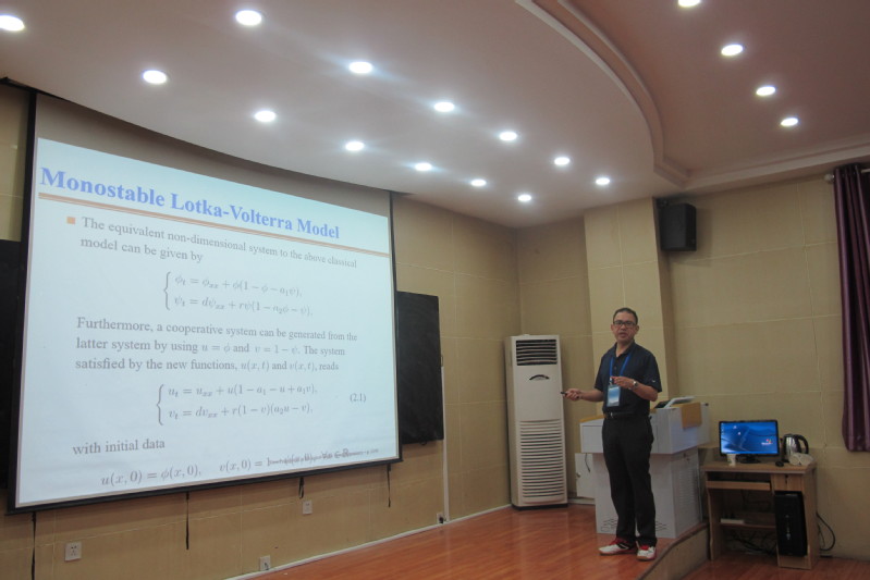 欧春华教授介绍了两种群L-V竞争模型行波解最小波速抉择问题的已有研究结果,重点讲解了他和合作者利用上下解技巧以及比较原理获得的最新研究结果。报告中,欧春华教授详细地解释了如何构造各种新型的上下解,从而得到最小波速的线性抉择和非线性抉择的。报告结束后,欧春华教授就与会师生提出的相关问题作了详细地解答。