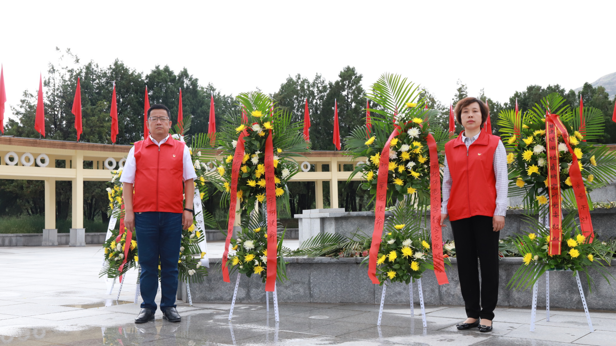 站在这片洒满革命烈士鲜血的土地上,全体党员怀着无比崇敬和悲痛的心情,向革命烈士默哀。默哀毕,党员代表缓步前行,向革命烈士敬献花篮,全体党员依次上前向革命烈士献花,认真瞻仰纪念碑并鞠躬致敬,伟大的革命先烈千秋不衰,万古不朽。最后,在鲜亮的横幅上写下了真切寄语并合影留念。