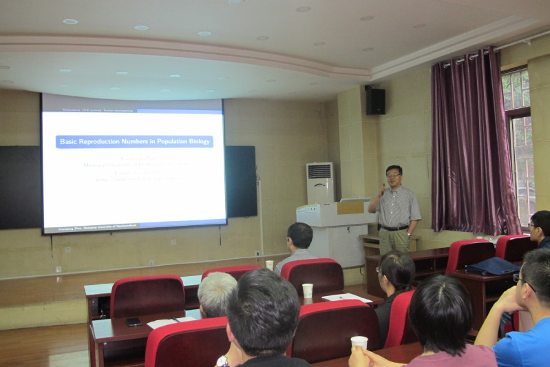 赵晓强教授主要介绍了种群生态学和流行病学中的一个重要概念—基本再生数。他首先通过两个具体的例子给出了基本再生数的定义。然后介绍了如何计算自治常微分方程模型中的基本再生数。最后介绍了一些最新的研究进展和应用。报告结束后,赵晓强教授就与会师生提出的相关问题作了详细地解答。