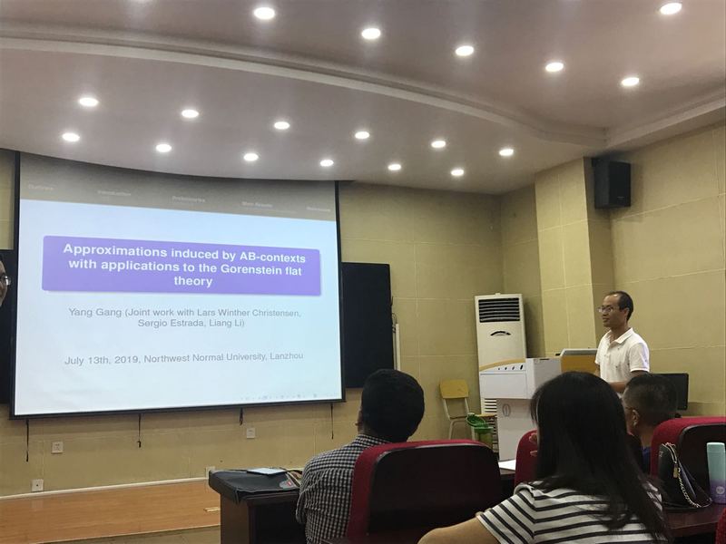 7月13日,应公司邀请,兰州交通大学杨刚教授来公司进行学术交流,并在教学9号楼C101学术报告厅作了题为《Approximations induced by AB-contexts with applications to the Gorenstein flat theory》的学术报告。报告会由狄振兴副教授主持,相关专业师生40余人参加了此次报告会。
