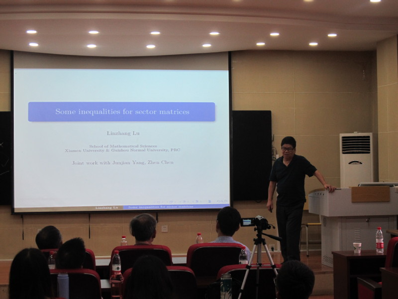 7月16日至7月19日,应公司邀请,厦门大学卢琳璋教授来公司进行学术交流,并于7月17日下午在教学9号楼C101学术报告厅作了题为《Some inequalities for sector matrices》的学术报告。报告会由缪树鑫副教授主持,相关专业师生40余人参加了此次报告会。