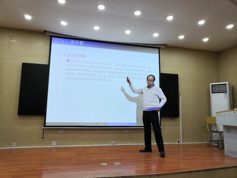 12月5日上午,应公司邀请,兰州理工大学理公司田振际教授莅临公司进行学术交流,并在9号楼C101学术报告厅作了题为《半群的子半群格的研究介绍》的学术报告。报告会由乔虎生教授主持,相关专业师生20余人参加了此次报告会。