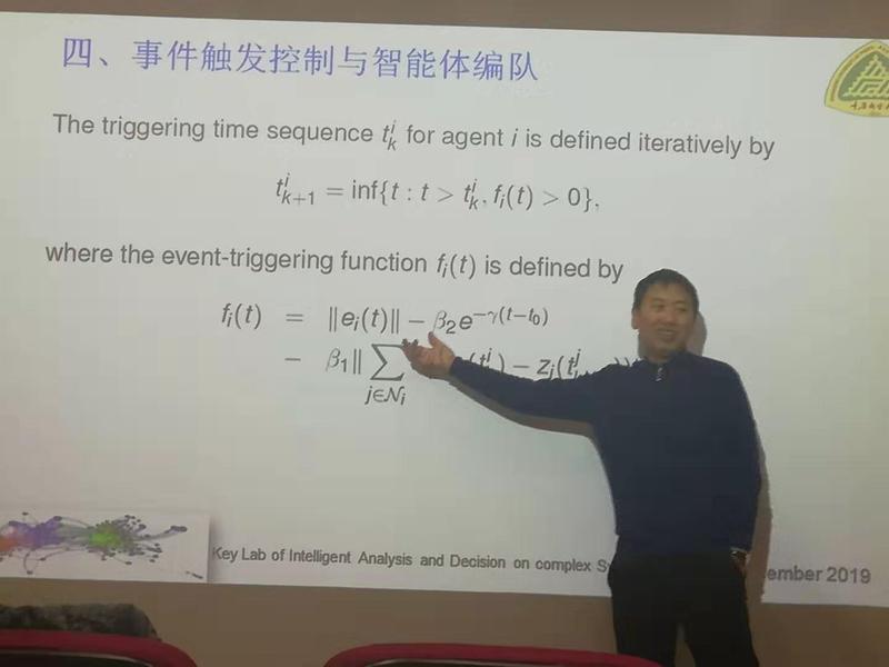 朱伟教授介绍了如何在通信网络带宽、在线资源、智能体自身计算处理能力等受限的条件下,研究基于事件触发机制的多智能体系统分布式协同编队问题,及基于事件触发机制的系统同步的电路实现。基于互联网的群体智能理论和方法是新一代人工智能的核心研究领域之一,对人工智能的其他研究领域有着基础性和支撑性的作用。群体智能的协同决策与控制是《新一代人工智能发展规划》中设置的关键共性前沿技术的八个研究任务之一。多智能体系统作为群体智能领域的一类典型系统,近10余年来更是受到了广大科研工作者的高度重视,其协同控制在包括航空航天在内的众多领域中展现出了强大的应用潜力。
