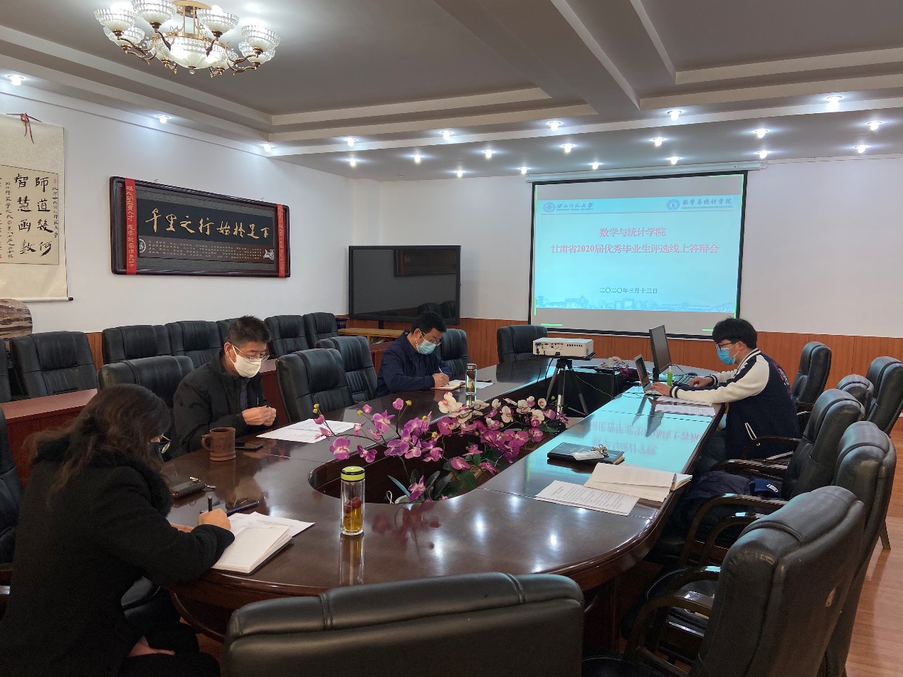 答辩会上,同学们通过共享屏幕、语音讲解详细介绍了自己在思想、学习、生活、社会实践等方面的情况,展现了在校期间的成长和进步过程,同时表明了今后的努力方向。经过激烈角逐,2016级数学与应用数学1班(云亭班)张晓、2016级数学与应用数学3班毛宇彤、2017级博士研究生杨沿奇3名同学被评选为甘肃省2020届优秀毕业生。
