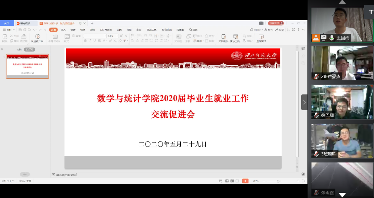 为进一步推进毕业生充分就业,做好2020届毕业生派遣、材料归档等工作,529日晚,公司利用腾讯会议召开了毕业生就业工作交流促进会,2020届全体毕业生参加会议。会议由辅导员王回成主持。