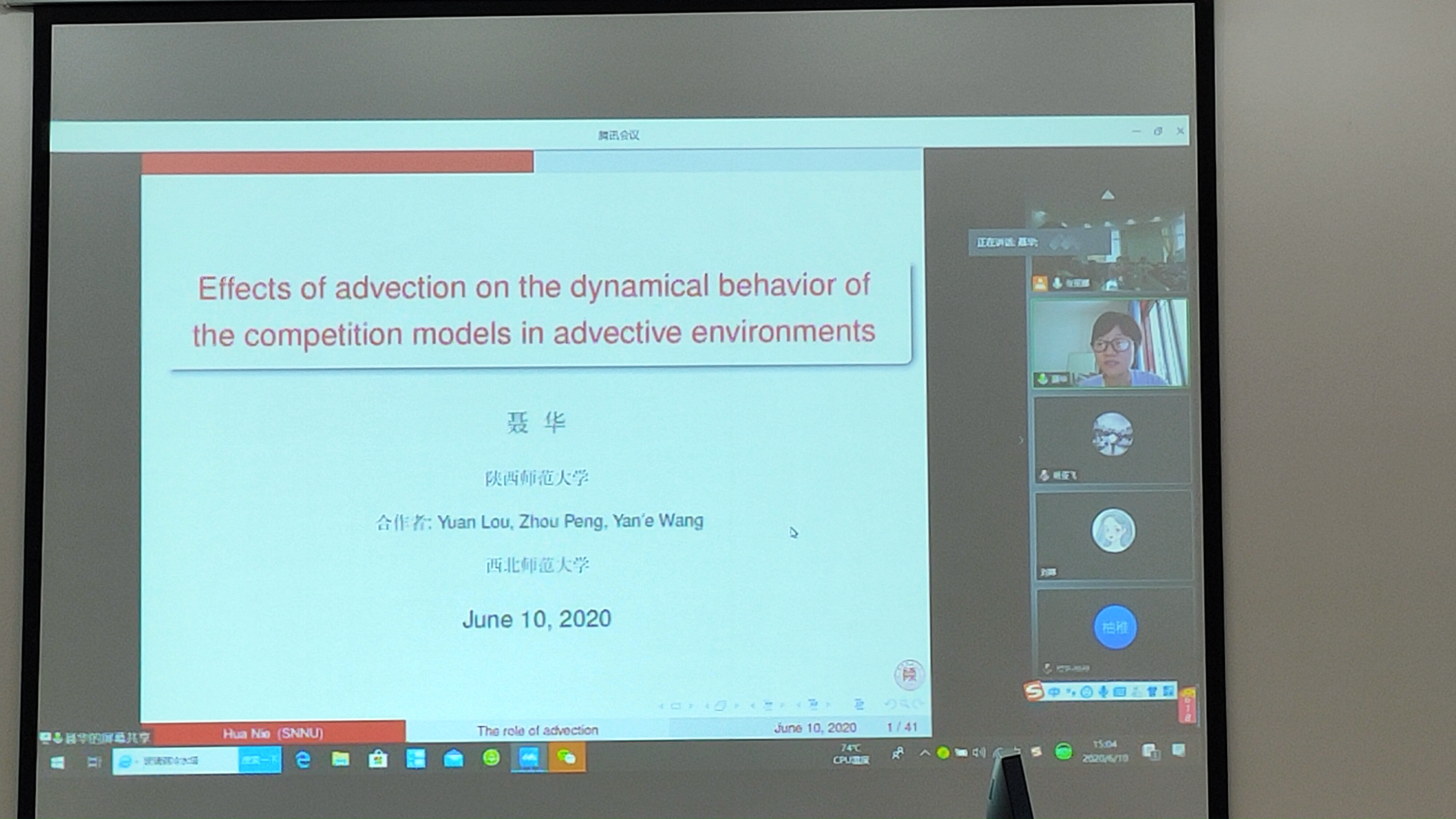 6月10日下午,应公司邀请,陕西师范大学聂华教授在线为公司师生作了题为《Effects of advection on the dynamical behavior of the competition models in advective environments》的学术报告。报告会由公司张丽娜副教授主持,100余名师生在线收听了报告。