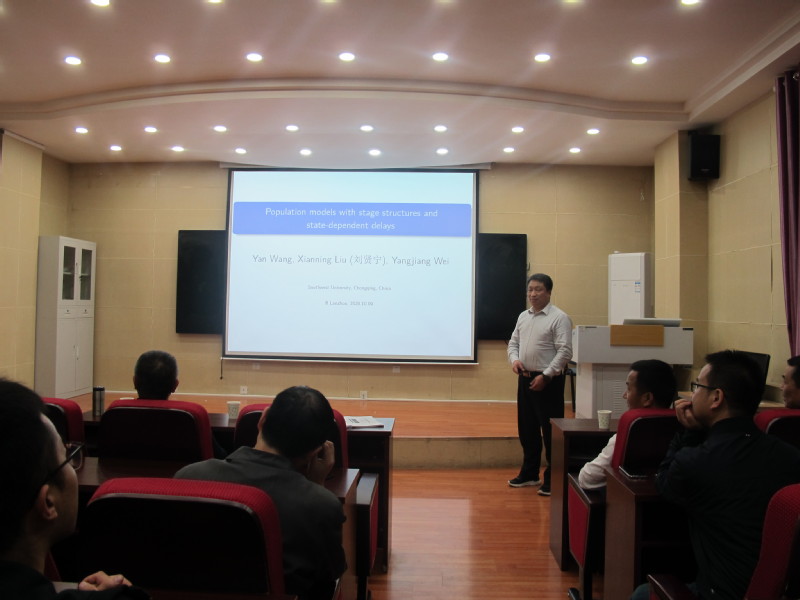 10月9日,应公司邀请,西南大学刘贤宁教授来公司进行学术交流,并在教学9号楼C101学术报告厅作了题为《Population models with stage structures and state-dependent delay》的学术报告。报告会由伏升茂教授主持,相关专业师生60余人参加了此次报告会。