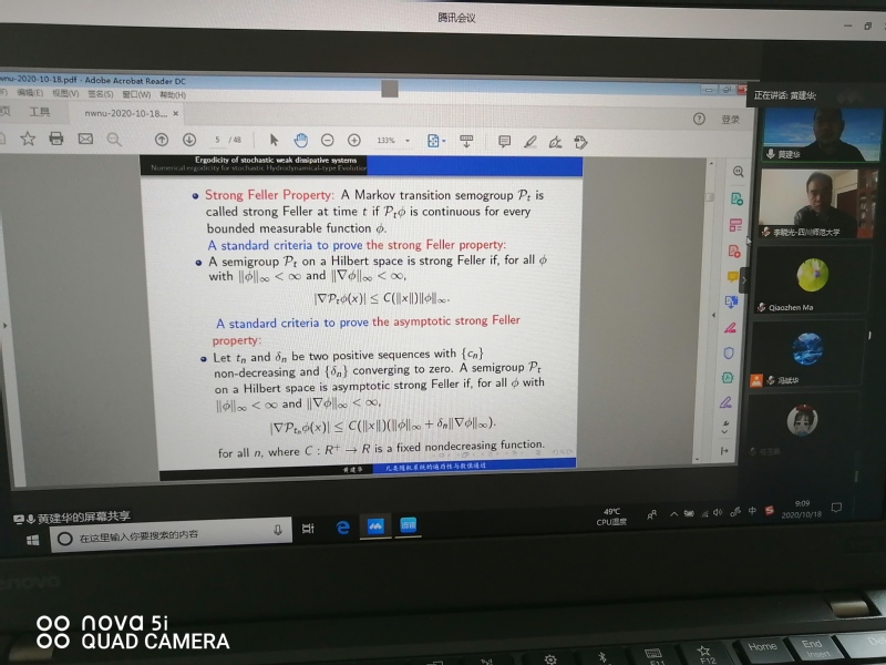 10月18日,应公司邀请,国防科技大学教授、博士生导师黄建华在线为公司师生作了题为《几类随机系统的遍历性与数值逼近》的学术报告。报告会由公司马巧珍教授主持,相关专业师生30余人在线观看了报告。