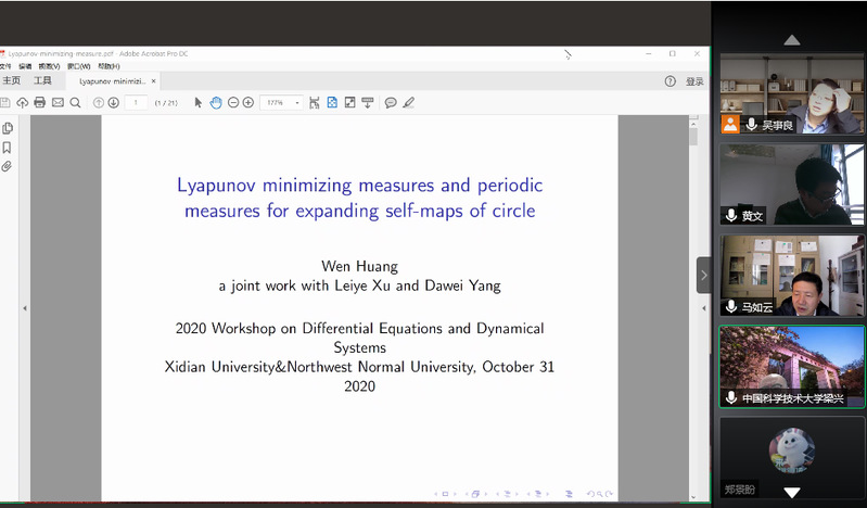 为了交流微分方程与动力系统及相关领域的最新研究成果和学术发展动态,促进学术交流与合作,williamhill英国官网与西安电子科技大学于2020年10月31日-11月3日通过腾讯会议平台联合举行“2020微分方程与动力系统学术研讨会”网络在线学术会议。22位微分方程与动力系统领域的著名专家学者作了特邀报告,国内多所高校科研院所的200余名师生参加了此次会议。