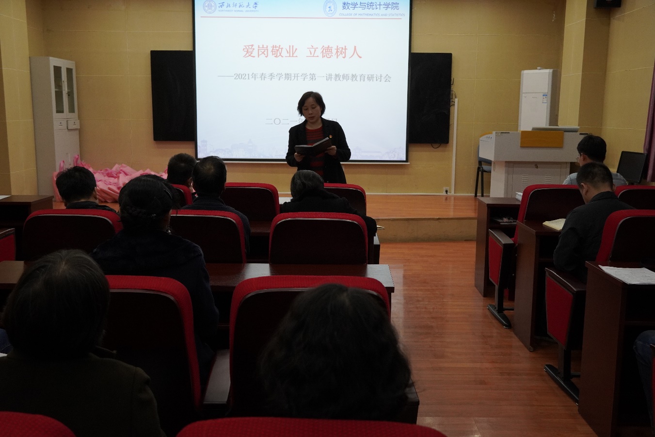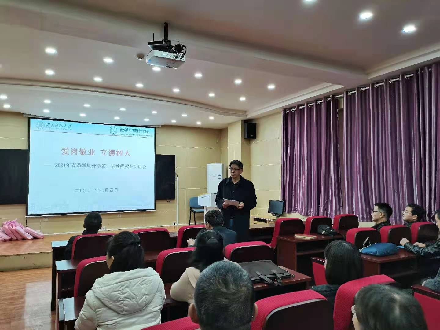 3月4日下午,数学系围绕2021年度教学质量工程建设和申报,组织全系教师进行新时代教育评价改革、研究生导师指导行为准则的学习研讨。与会教师结合自身实际,就如何在数学与应用数学专业一流建设中展示自我,助力公司一流建设进行了分析与交流。数学系负责人对高等代数、微分方程和几何类一流课程的申报事宜做了安排,号召全系教师加强理论学习,深入钻研教材,站好讲台,教书育人。