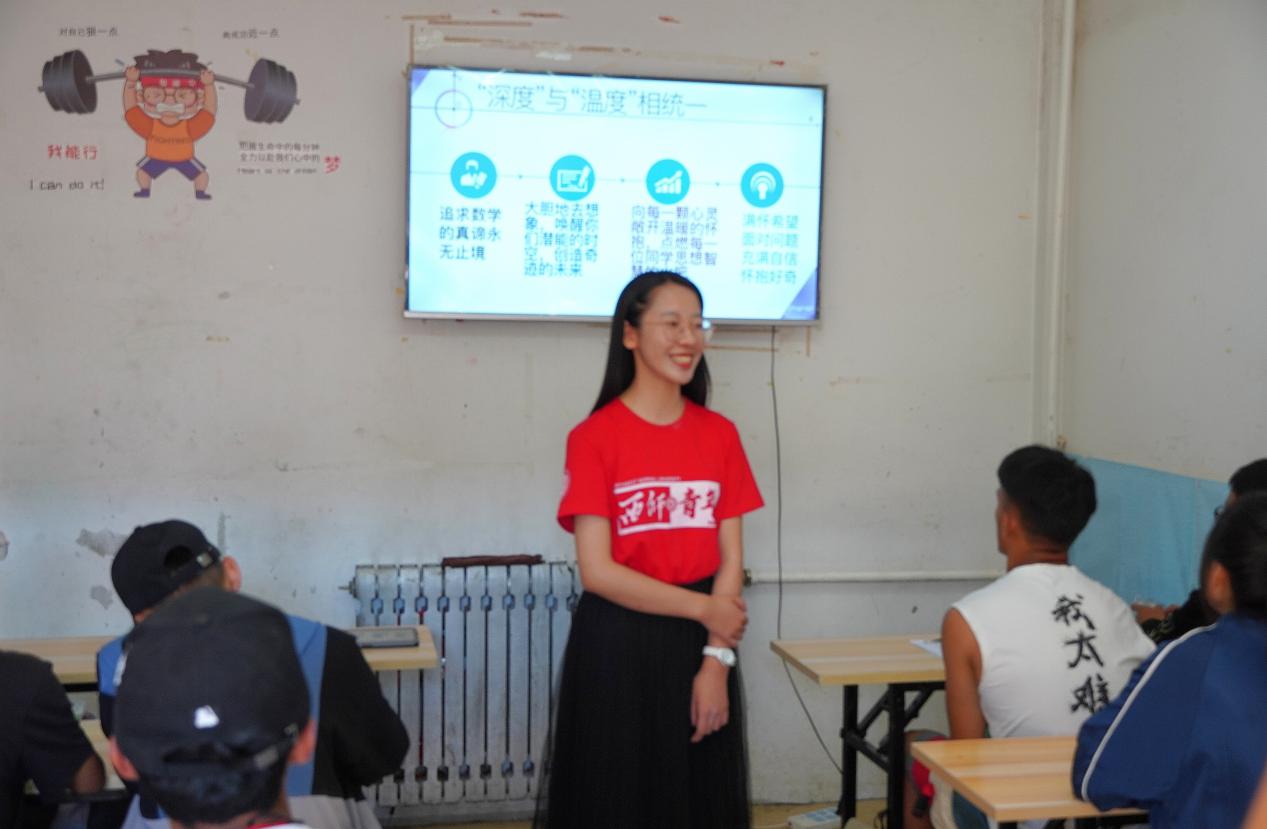 汇思政教育,创新数学思维。8月1日,“以梦为桥,助爱甘南”实践团队前往梦桥育英公司开展思政教育活动。实践队员赵梦瑶为梦桥育英公司的员工带来了一堂特殊的数学课。实践队员将思政教育融入课堂教学,抛出了简单的两个问题,一个全新的数学世界便就此展现于同学们的面前。该堂课细分为五个部分,内容逐步深化,思想逐渐升华,同学们渐入佳境,并在课堂上主动提问、积极探讨、踊跃发言,课堂气氛活跃。