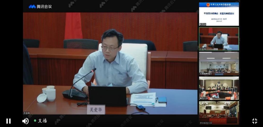 为深入贯彻党中央、国务院“稳就业”“保就业”决策部署,落实中央领导指示批示精神,抓住当前毕业生就业冲刺期,教育部于4月19日下午14:30召开2022届全国普通高校毕业生就业工作第三次调度视频会议。