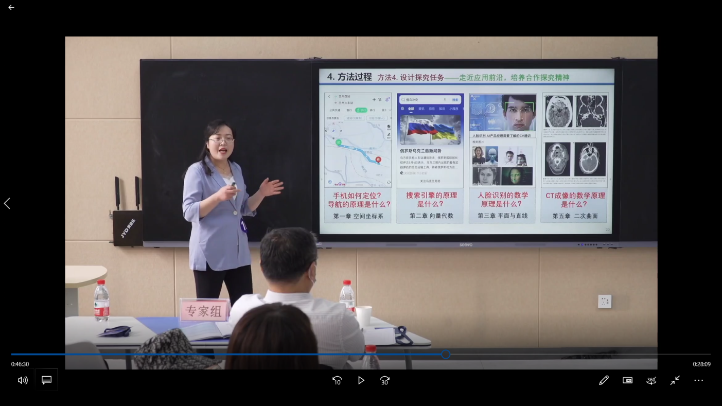 在现场汇报环节,张丽娜老师从教学内容推陈出新,充分提升课程“两性一度”;以几何之美为牵引,巧妙融入思政元素;打造“雨课堂”与“智慧树”双平台助力的智慧教学过程;多维度、可监测、全过程的考核评价体系等方面,将精心打磨的《空间解析几何》教学设计创新汇报展示给评委。其课程设计契合了“推动教学创新、培养一流人才”的大赛主题,得到评委们的一致认可。