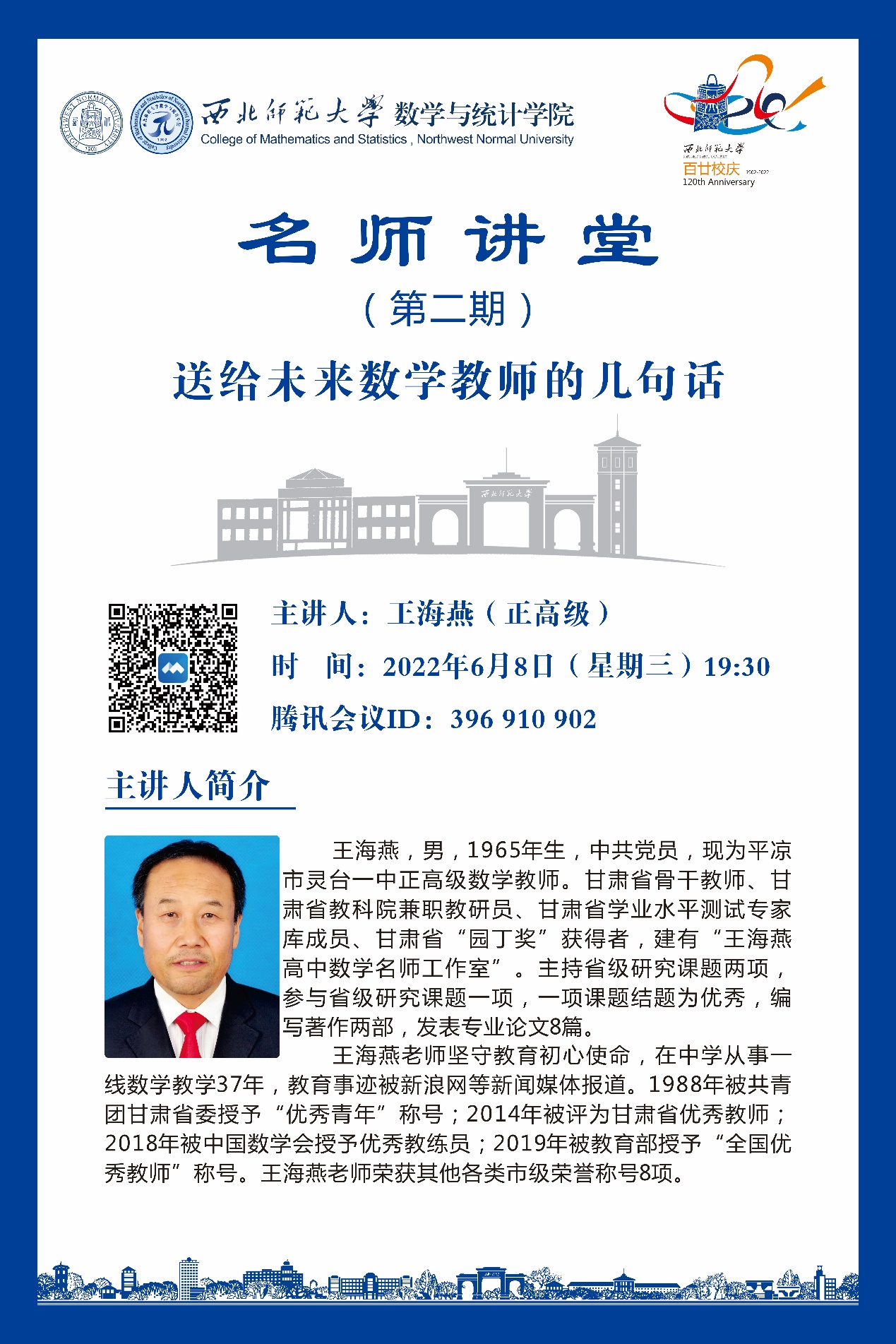 他激励同学们作一名优秀的人民教师,不仅要有优美的教学语言,广博扎实的专业知识,丰富科学的教学经验,严谨勤奋的工作态度,用于研究的学者精神,更要有一份为国家培育英才的家国情怀,这是作为一名教师必须坚守的初心。