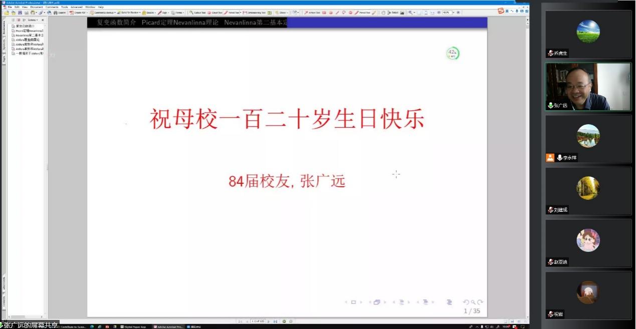 7月26日上午,清华大学张广远教授介绍了其本人在Ahlfors 的基本不等式中正常数 h的精确值的确定问题方面的研究成果。
