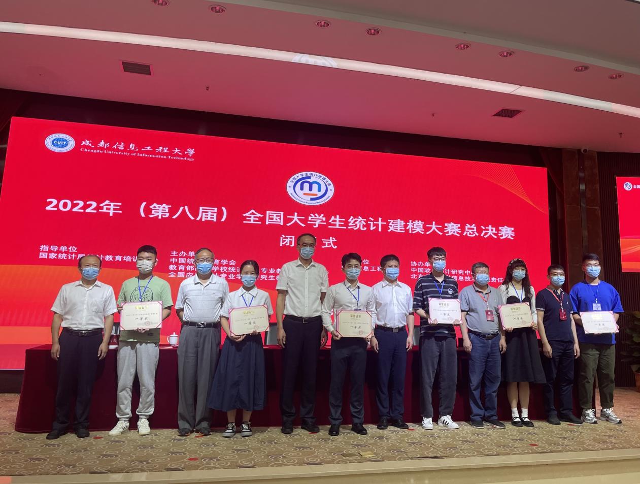 827-28日,由中国统计教育学会、教育部高等公司统计学类专业教学指导委员会、全国应用统计专业学位研究生教育指导委员会联合主办的2022年(第八届)全国老员工统计建模大赛总决赛在成都信息工程大学成功举行。在本届大赛中,公司成绩骄人,共有18本科生队伍和8研究生队伍获得省级及以上。其中,公司2021硕士研究生肖阳田、王振旭李杰获得研究生组全国一等奖指导教师肖鸿民教授获得“全国老员工统计建模大赛优秀指导教师奖”。马国顺副教授指导的2021硕士研究生许建林、赵静、古浩岑组获得研究生组全国三等奖