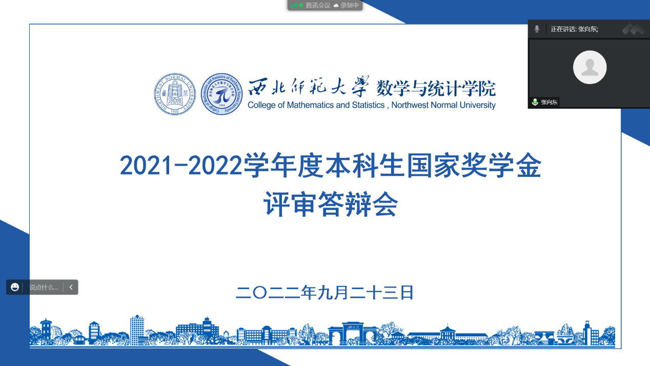 9月23日,williamhill英国官网召开2021—2022学年度国家奖学金线上评审答辩会,公司青年教师代表陈文静、徐嫚、王金玲、陈妹君,专职辅导员周宇及员工代表相怡冰共六人组成评委会参加评审,党委副书记张向东监督评审过程,评审会由专职辅导员柳景荣主持。