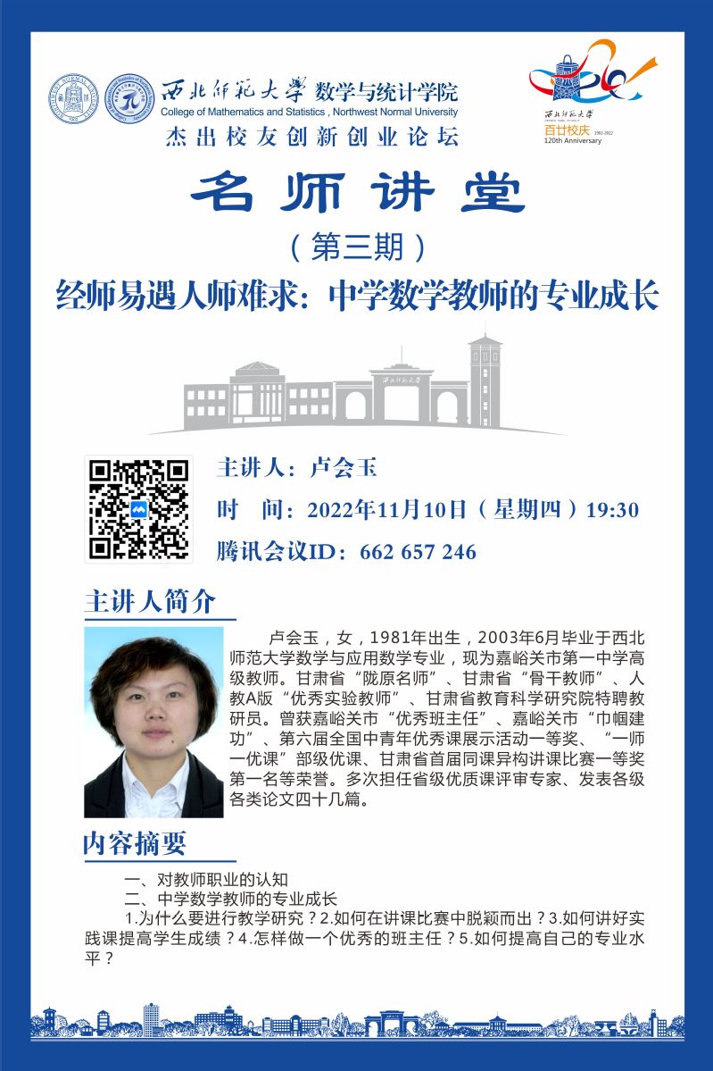名师讲堂第三期|卢会玉—经师易遇人师难求:中学数学教师的专业成长
