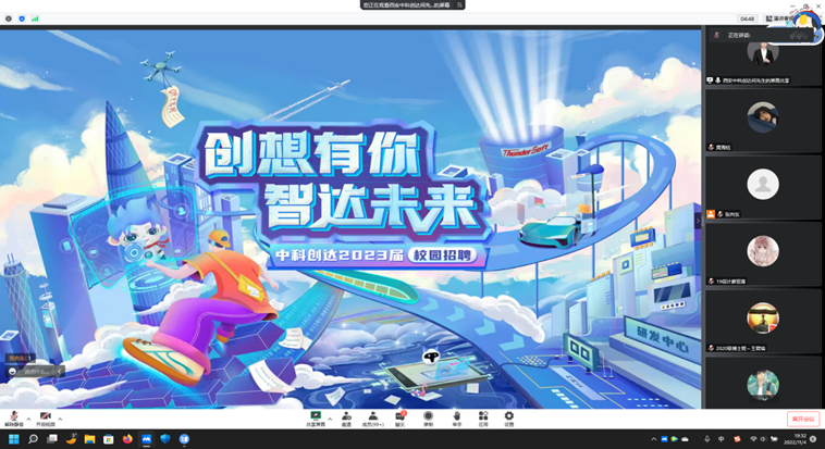 为切实推进公司毕业生就业服务工作,拓宽就业渠道,2022114日晚上19:30,公司举办了西安中科创达软件有限公司专场校园招聘线上宣讲会。公司辅导员、毕业班班主任和2023届本硕毕业生共110余人参加。