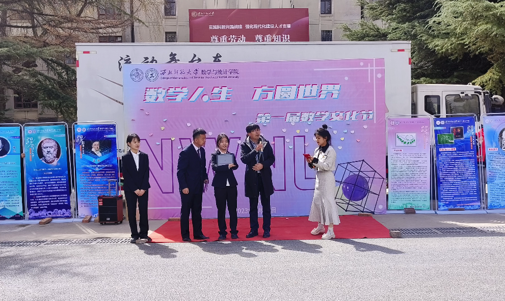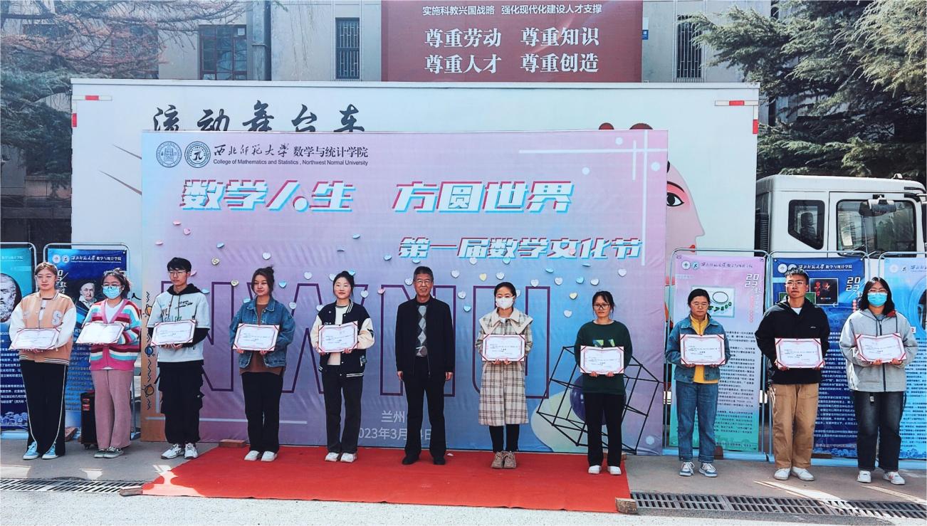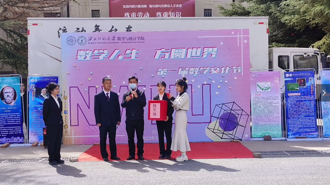开场舞《good time》拉开数学文化节的帷幕,主持人介绍了由十大数学难题与十大数学名人组成的数学文化长廊和“数写未来,微创新篇”数学微课制作大赛活动成果,伴随着由圆周率谱写而成的原创曲目《π》的缓缓播放,开幕式迎来高潮。杨庆老师和苟正斐老师分别为本次活动抽取了幸运观众和数统锦鲤,刘建成老师为微课大赛获奖同学颁发荣誉证书。