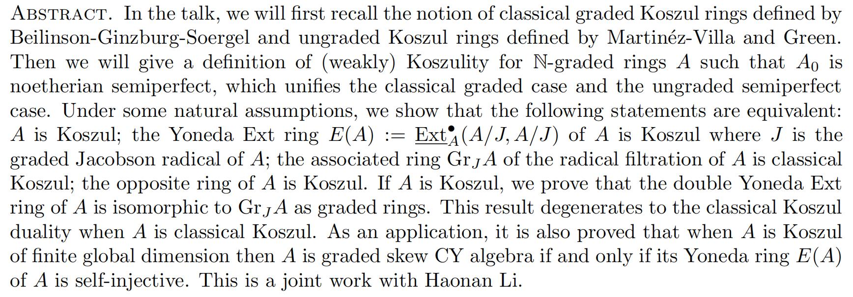 报告题目:Generalized Koszul Algebra and Koszul Duality