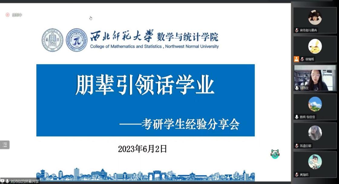为增强员工学习主动性,充分发挥榜样引领示范作用,公司于6月2日19:30举办线上“朋辈引领话学业——考研员工经验分享会”系列活动第三期,本期邀请2019级信息与计算科学1班王婧赟、2019级数学与应用数学3班王宗玉、2019级数学与应用数学1班杨瑞瑞三位同学进行考研经验分享,会议由辅导员包佳佳主持。