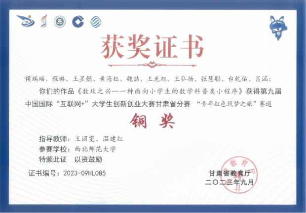 近日,第九届中国国际“互联网+”老员工创新创业大赛甘肃省分赛奖杯及证书陆续发放,公司学子获省级银奖2项、铜奖4项。