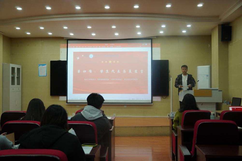 2021级数学与应用数学3班班长苏昊,代表“青马班”学员发言,他十分珍惜这次与各班优秀青年交流学习的机会,希望大家能够以此为契机努力学习、不负韶华、提高本领、建功立业。