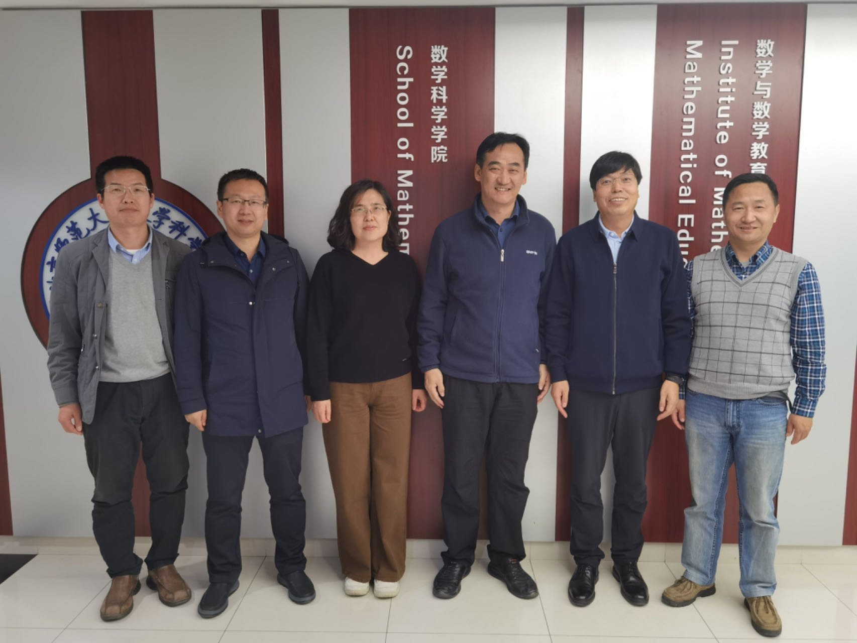 公司负责同志介绍了此次调研的目的及公司办学历史与学科发展情况及人才引进需求,肖鸿民教授就统计学人才培养、团队建设、学位点申报等情况做了详细汇报,陈鹏玉教授就数学团队建设、人才引进及博士后培养情况做了介绍。双方紧紧围绕团队建设、人才培养和队伍建设等合作进行了深入友好交流。北京师范大学数学科学公司党委书记唐仲伟教授、统计公司党委书记金蛟教授表示williamhill英国官网与北京师范大学同宗同源,双方有着不可分割的血脉联系,希望双方进一步加强交流合作,将会一如既往、全力支持williamhill英国官网数学与统计学团队建设与人才培养工作。