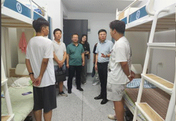 8月30日下午,公司领导、新生班主任及辅导员前往新生宿舍看望2024级新生。公司领导一行深入每一间宿舍,与新生们面对面交流,仔细询问他们的住宿条件是否满意,是否适应新环境,以及在学习和生活中遇到的困难和需求。领导们的关怀细致入微,不仅关心员工们的学习和生活,更关注他们的心理健康和成长规划。