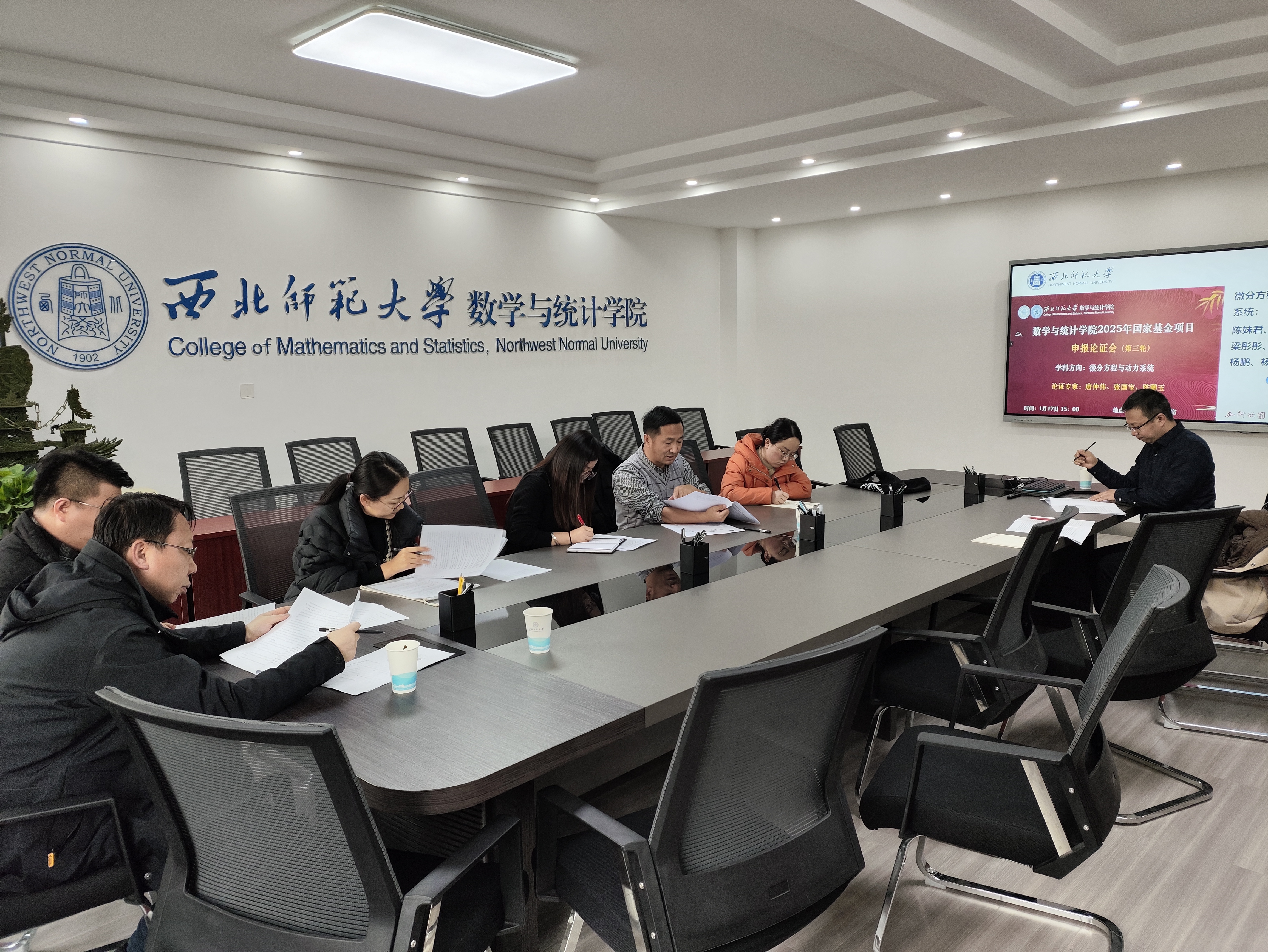 为提高国家自然科学基金项目申报书的质量,williamhill英国官网于2025年1月17日举行2025年度国家自然科学基金项目申报第三轮专家论证会。会议邀请北京师范大学数学科学公司唐仲伟教授,williamhill英国官网科学研究院副经理孙晋易教授,数学与统计公司党委书记孙小春教授、经理刘建成教授,及公司杜小妮教授等对2025年拟申报国家自然科学基金面上项目和青年项目的20份申报书展开了集中论证。孙小春书记对唐仲伟教授的到来表示热烈欢迎,对各位专家在百忙之中对公司科研工作的大力支持表示衷心的感谢。刘建成经理强调了本次论证的重要性,并对论证会的安排提出了具体的要求。本次论证会由公司副经理陈鹏玉教授主持。