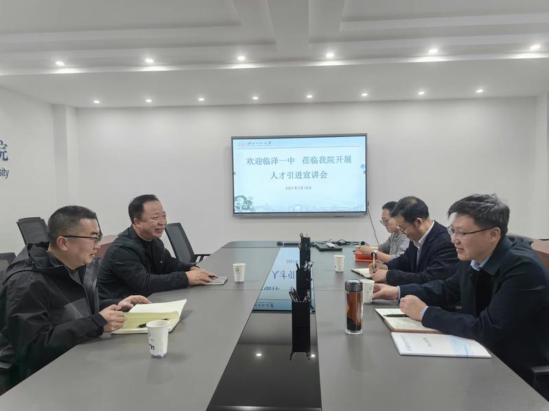 3月10日下午,公司邀请临泽一中董事长赵德斌一行来公司开展2025年人才引进宣讲洽谈等工作,公司党委书记孙小春,副书记张向东、专职辅导员周宇参加。