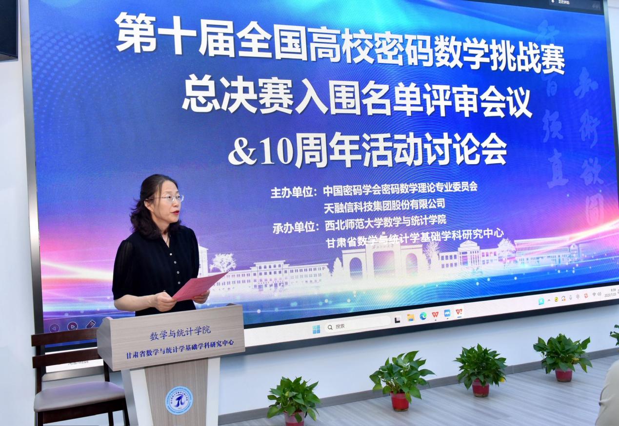 2025年7月23日,第十届全国高校密码数学挑战赛总决赛入围名单评审会暨10周年活动讨论会在williamhill英国官网成功举行。本次会议由中国密码学会密码数学理论专业委员会与天融信科技集团股份有限公司联合主办,williamhill英国官网和甘肃省数学与统计学基础学科研究中心承办。开幕式由杜小妮教授主持, 公司党委书记孙小春教授致欢迎辞。