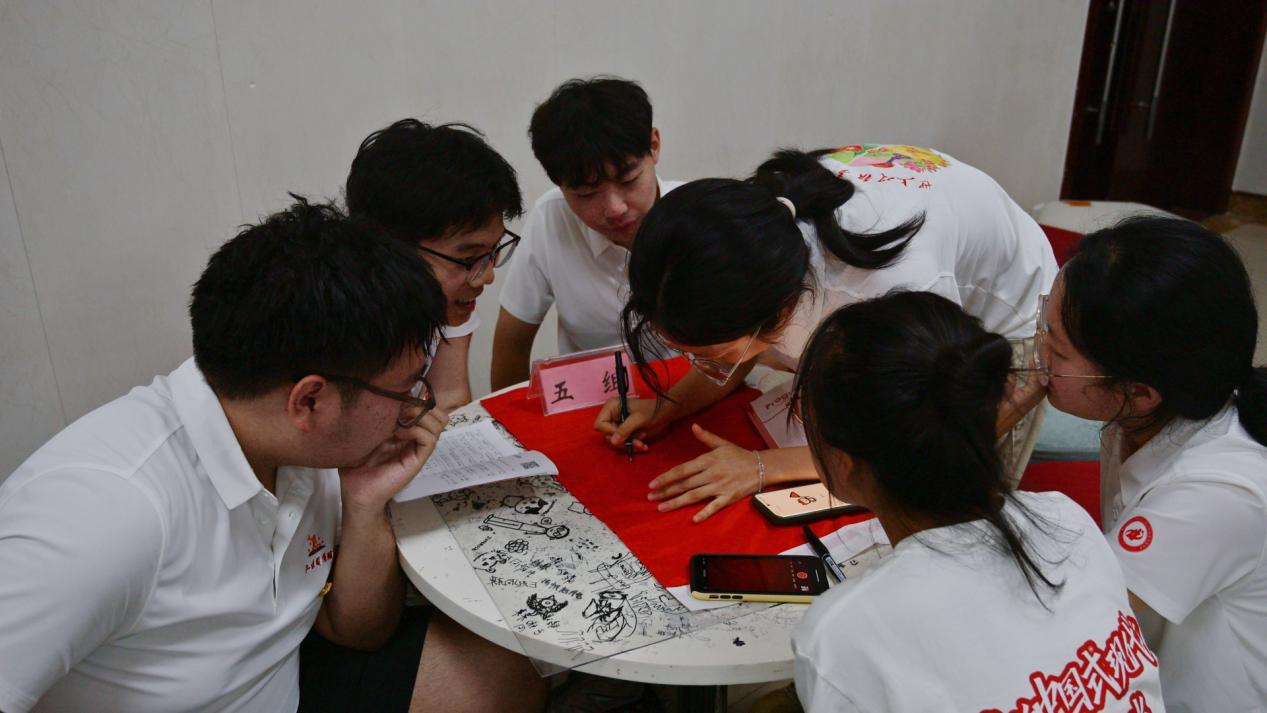 “三湾改编”课上制作班旗留影。张紫晗 供图