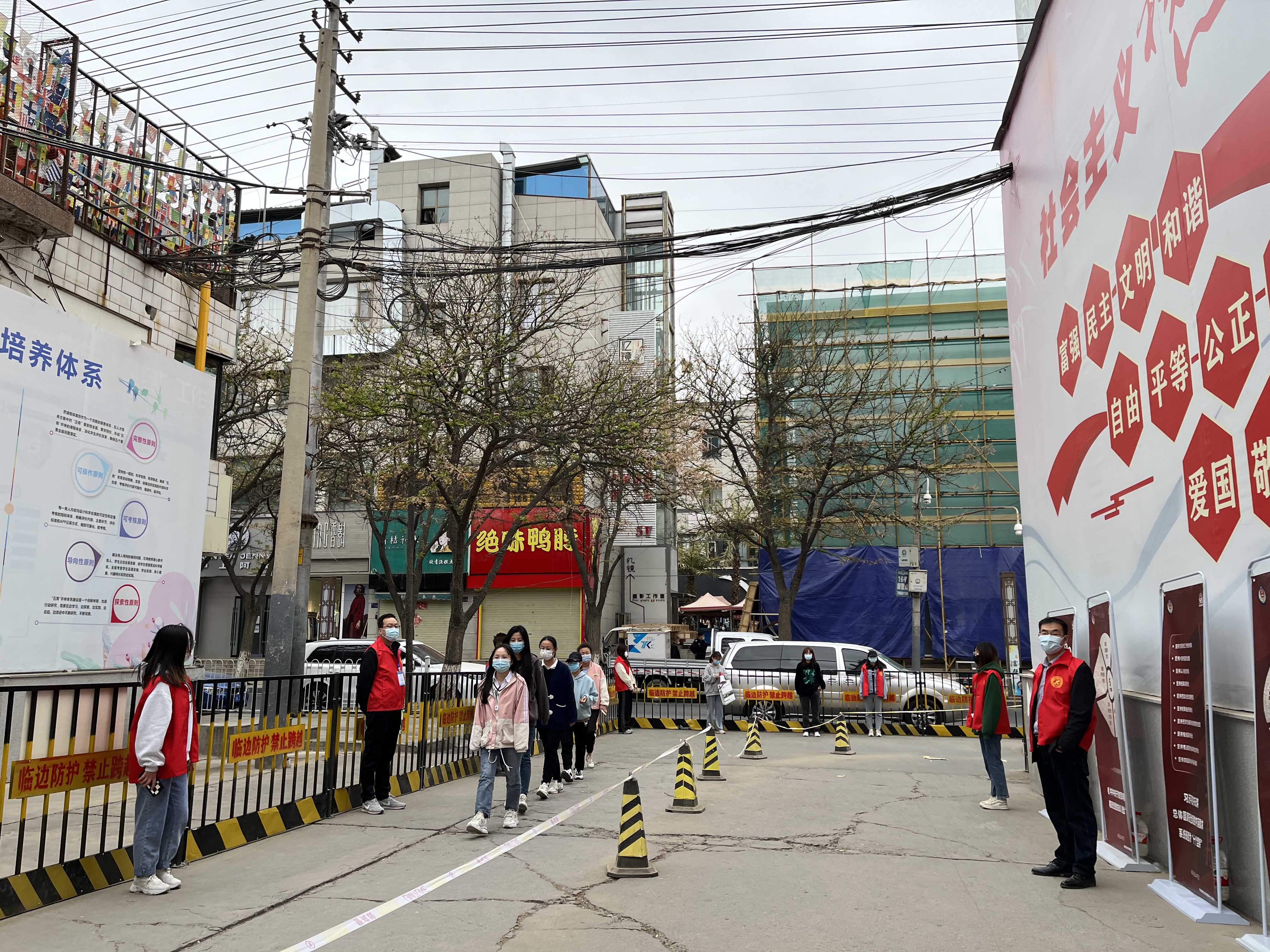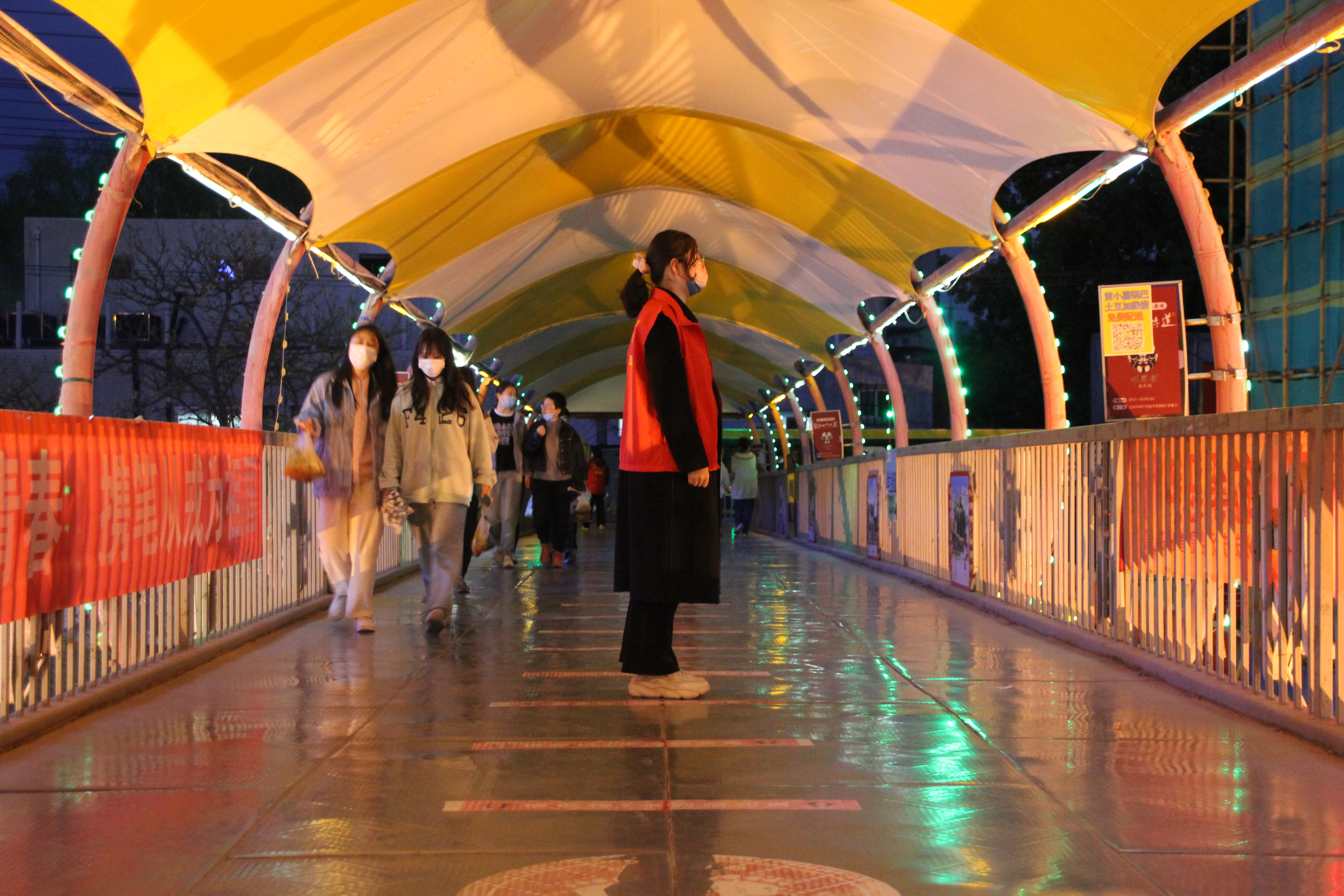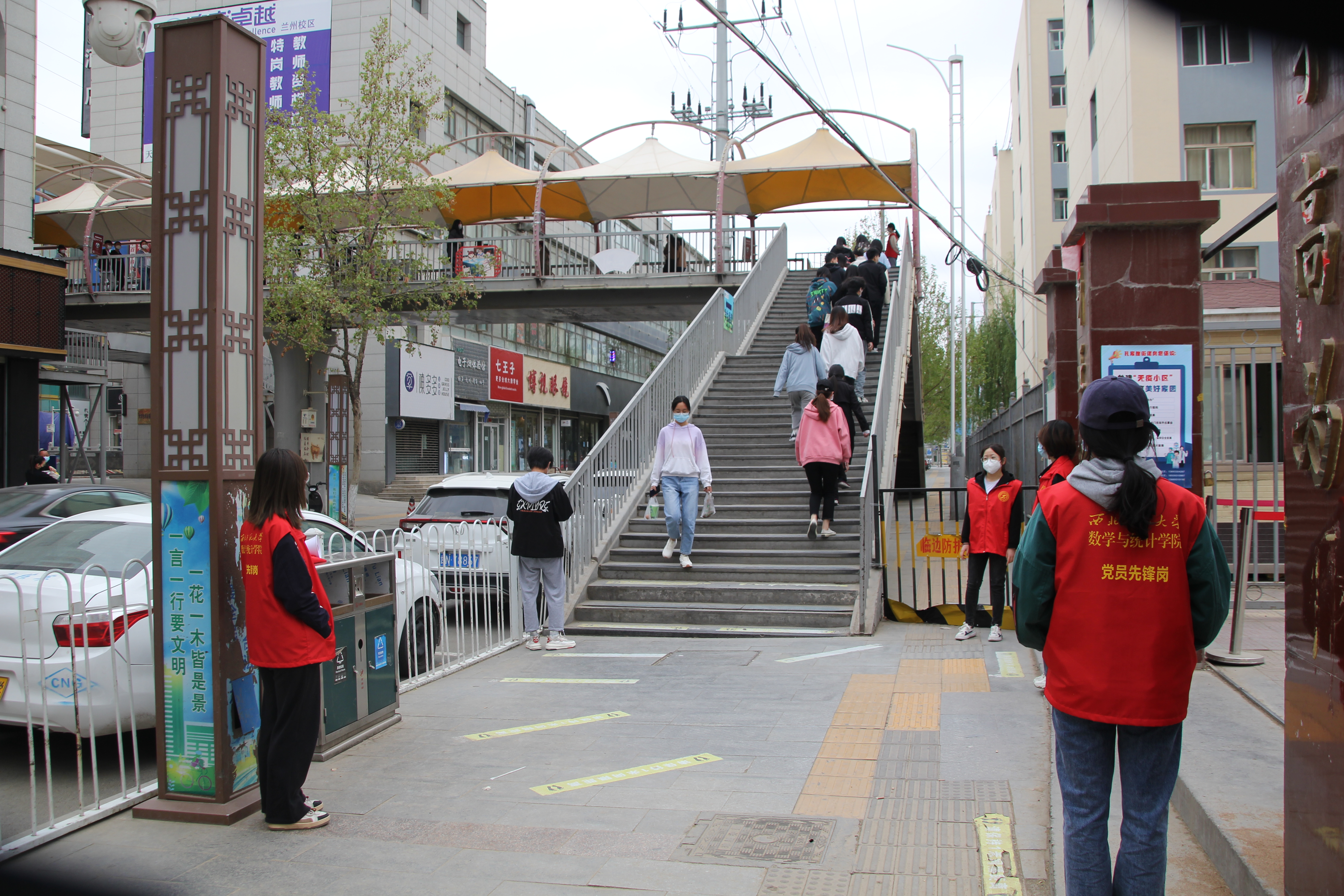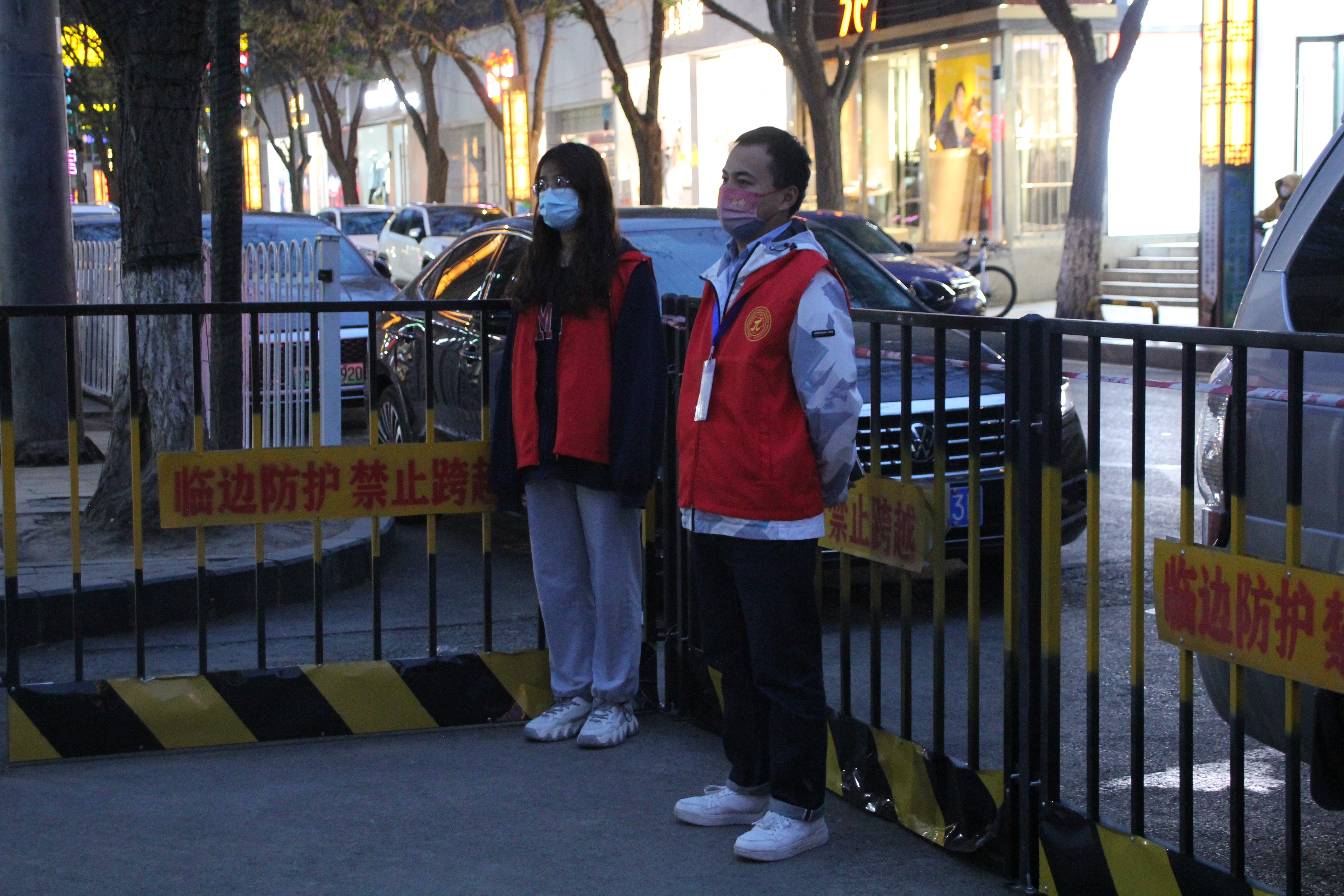 “先锋领航,共守防控第一线。”四月十五日下午两点,兰州市的气温骤降,但是公司党员同志的服务热情依旧高涨。他们按时到达自己的岗位,坚守在一线。“忘了自己,宽了心胸”是对他们由衷地赞美,从兰天公寓东门到公司西门,随眼可见许多穿着红马甲的党员同志,提醒同学们准备好健康码和通行卡,做到了不扎堆、不拥挤,井然有序,严格遵守疫情防控的要求,保证了同学们出行的秩序与安全。